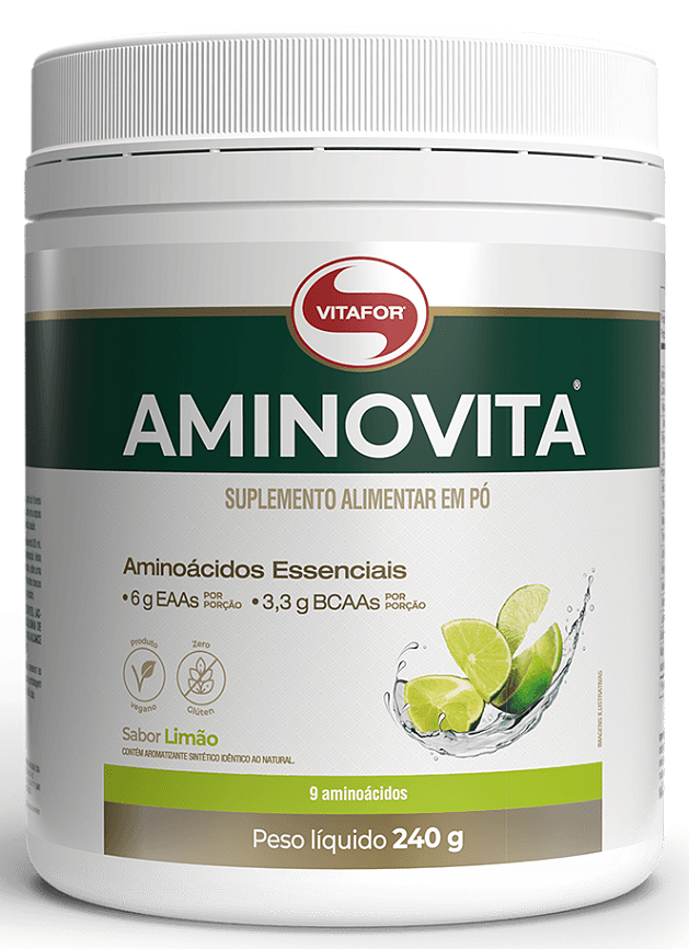 AMINOVITA é um suplemento alimentar composto por 9 aminoácidos de origem vegetal: