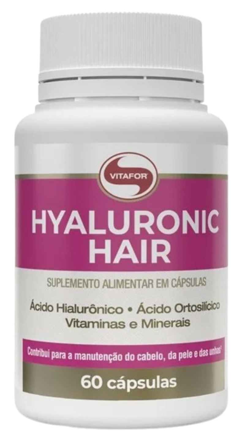 HYALURONIC HAIR é um suplemento alimentar à base de ácido hialurônico, vitaminas, minerais e óleo de semente de uva (Vitis vinífera L.).