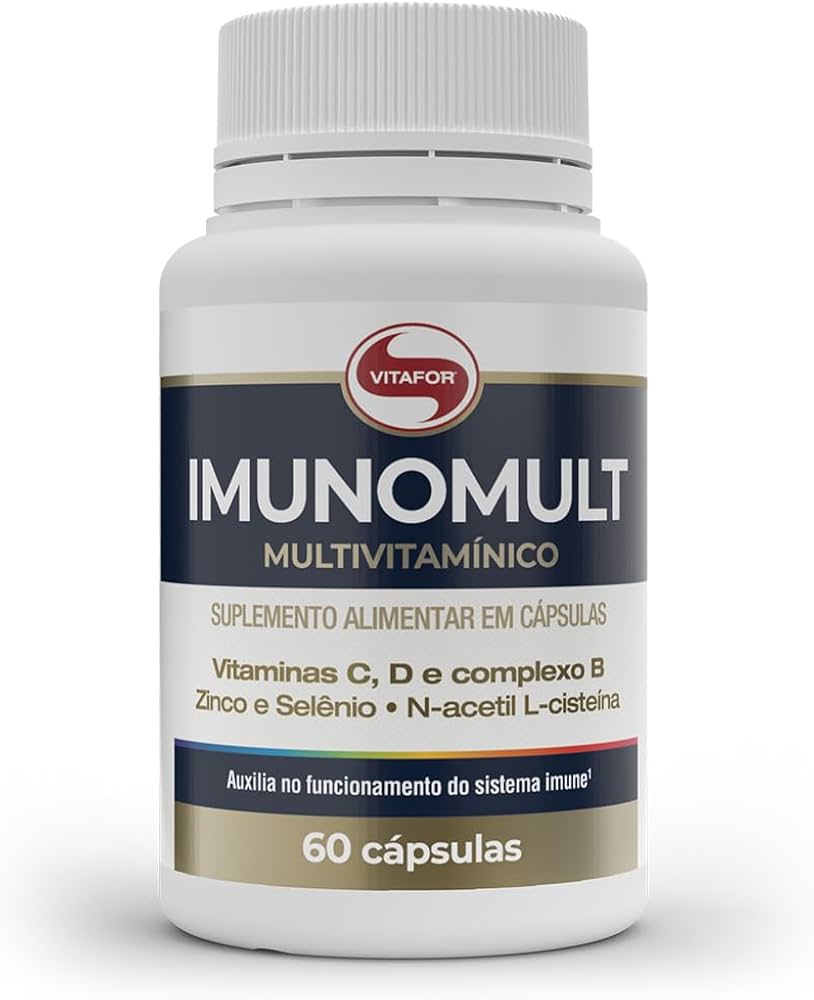 Imunomult multivitamínico é um suplemento alimentar à base de vitaminas e minerais em cápsulas com 500 mg de n-acetil l-cisteína (nac) na porção.