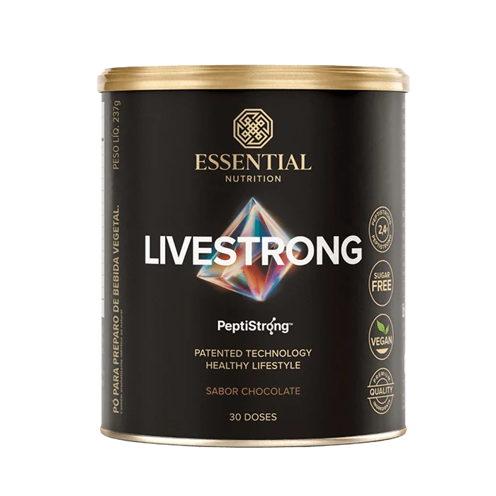 LiveStrong é uma fórmula prática e inovadora que combina o sabor marcante do puro cacau com PeptiStrong — proteína hidrolisada da fava, cuidadosamente selecionada com o apoio da inteligência artificial, a partir de uma ampla e avançada base de dados científicos dedicada a ingredientes derivados de plantas.